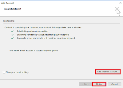 Selanjutnya pada bagian ini kita tambahkan user account dan melalui lewat add another account, Setelah itu kita klik Finish saja.